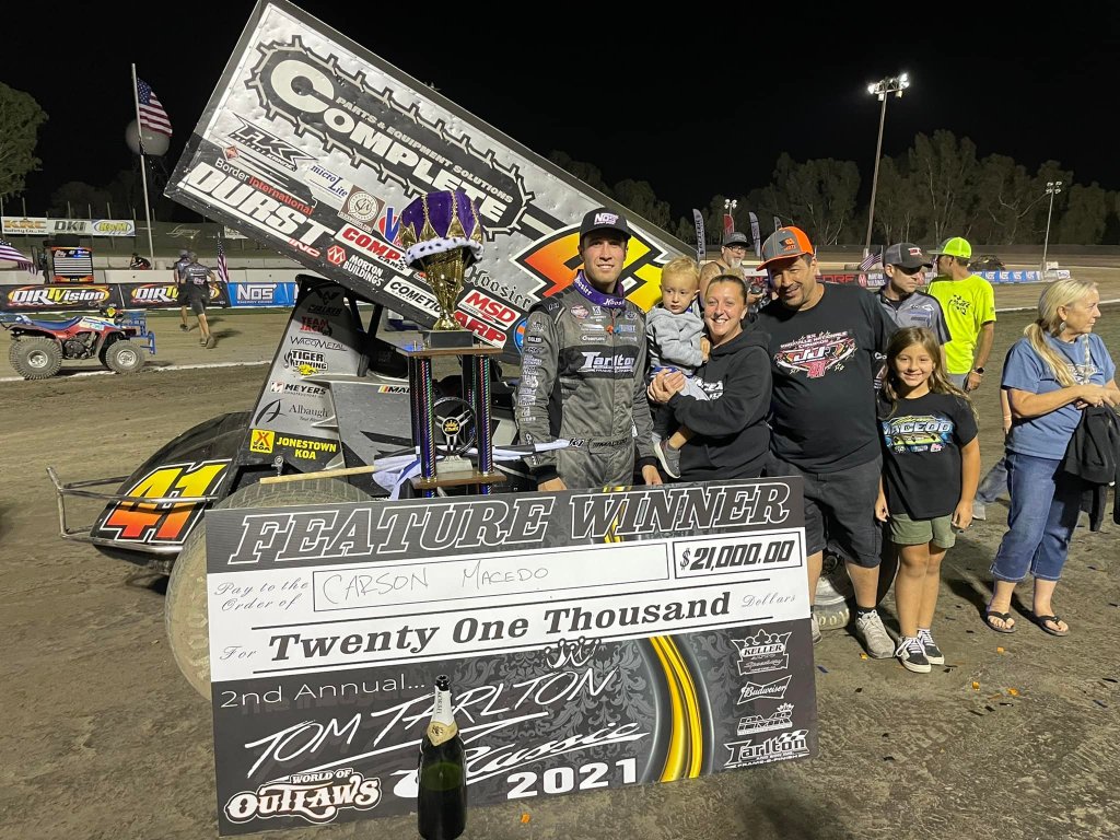 The Outlaws returned to CA in a limited fashion in 2021, running the Gold Cup at Chico and the Tom Tarlton Classic at Hanford. Carson Macedo was triumphant at Hanford, winning the race honoring a man who helped Carson get his career started in racing. (Pictured)